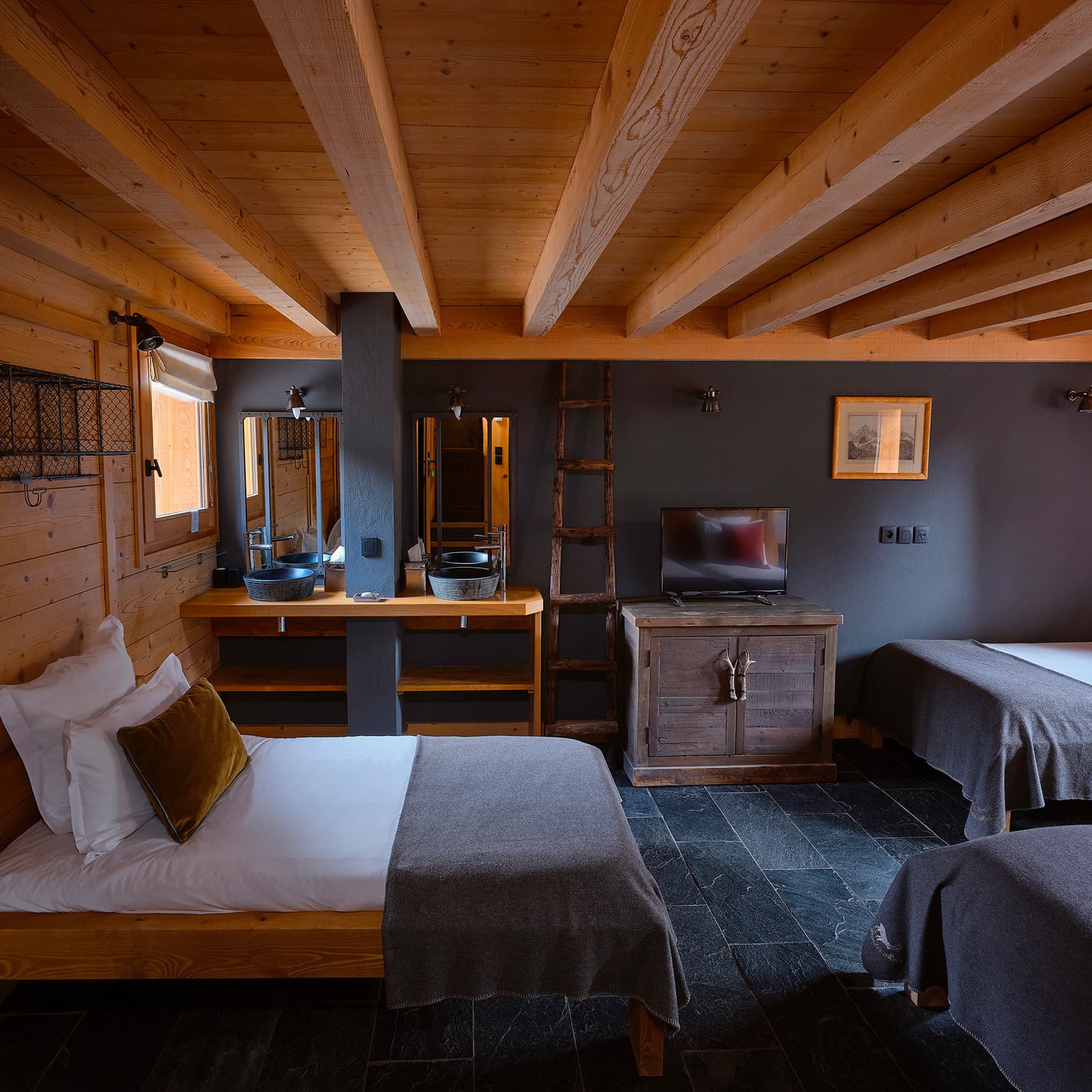 À partir de 4 000 € la semaineVous aimerez ce chalet pour ses accents authentiques et son style savoyard traité comme un refuge. Vous serez séduit par son confort, ses matières artisanales raffinées comme les tissus de la filature Arpin ou les meubles et objets traditionnels locaux.
