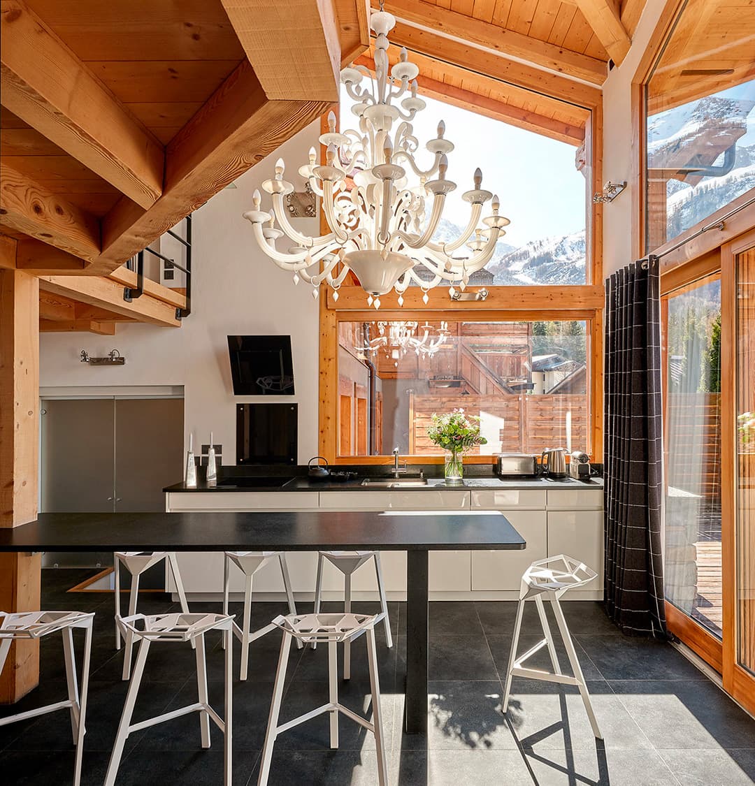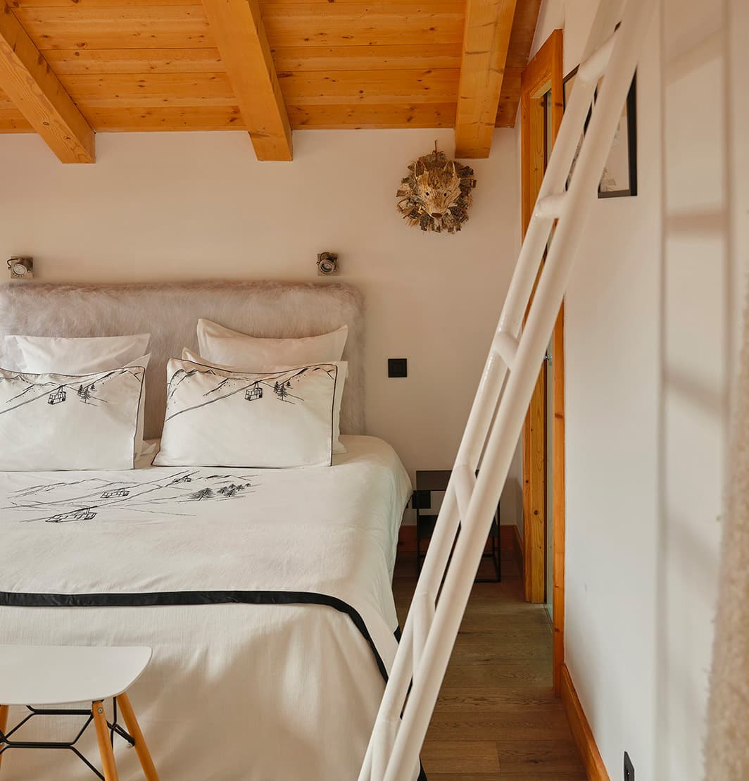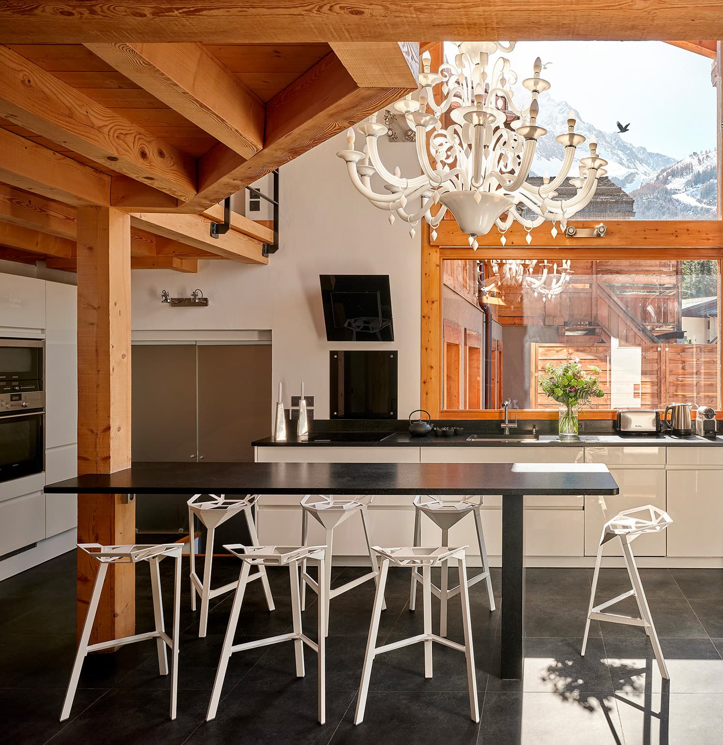 À partir de 4 000 € la semaineVous immerger dans l'atmosphère épurée aux meubles design d'un chalet très lumineux donnant sur un deck plein sud face au Mont-Blanc. Un parti pris de lumières saisissants de transparence dans un univers blanc ponctué de noir.