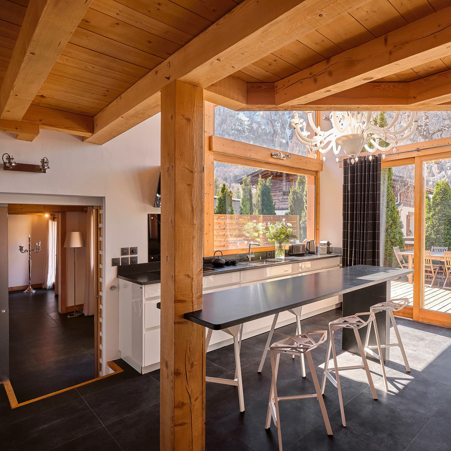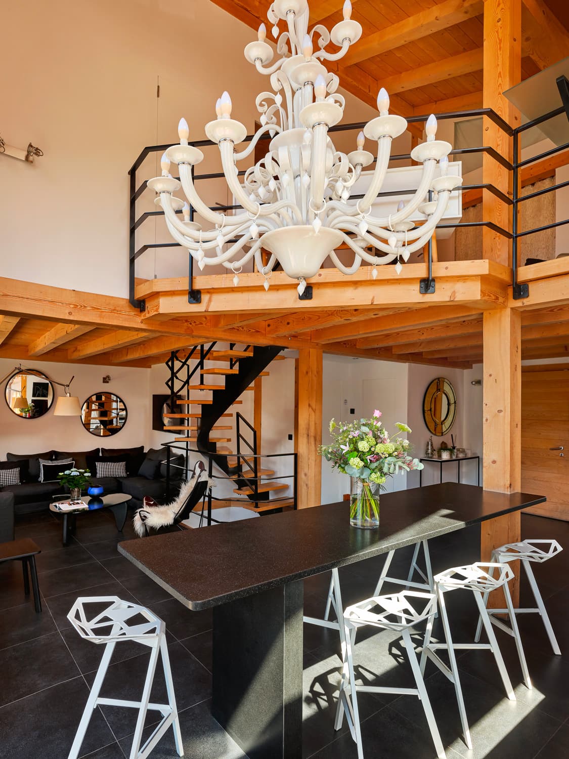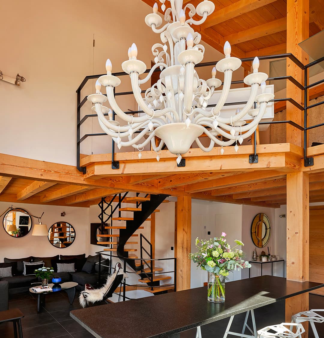 À partir de 4 000 € la semaineVous immerger dans l'atmosphère épurée aux meubles design d'un chalet très lumineux donnant sur un deck plein sud face au Mont-Blanc. Un parti pris de lumières saisissants de transparence dans un univers blanc ponctué de noir.