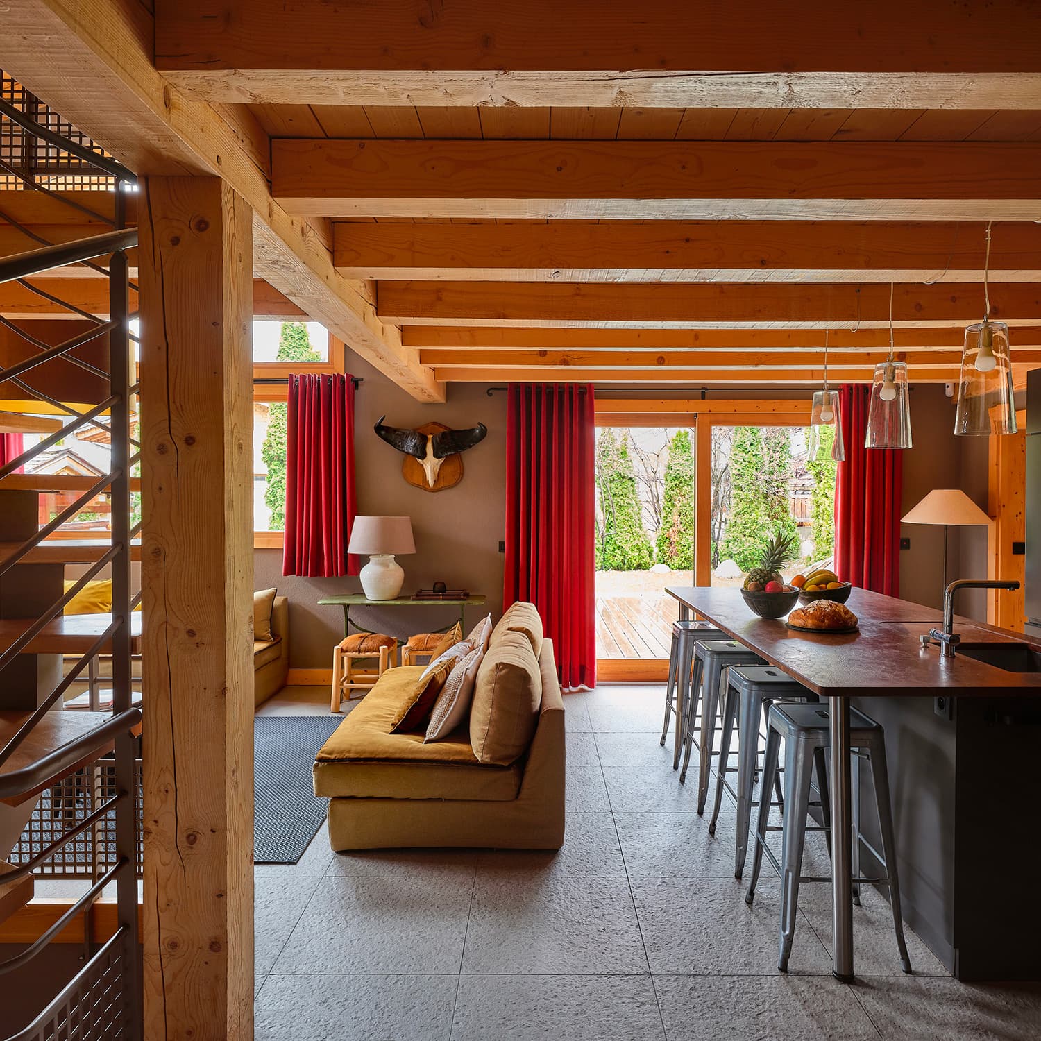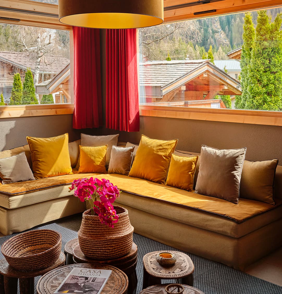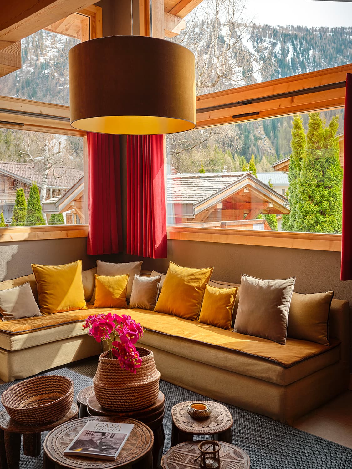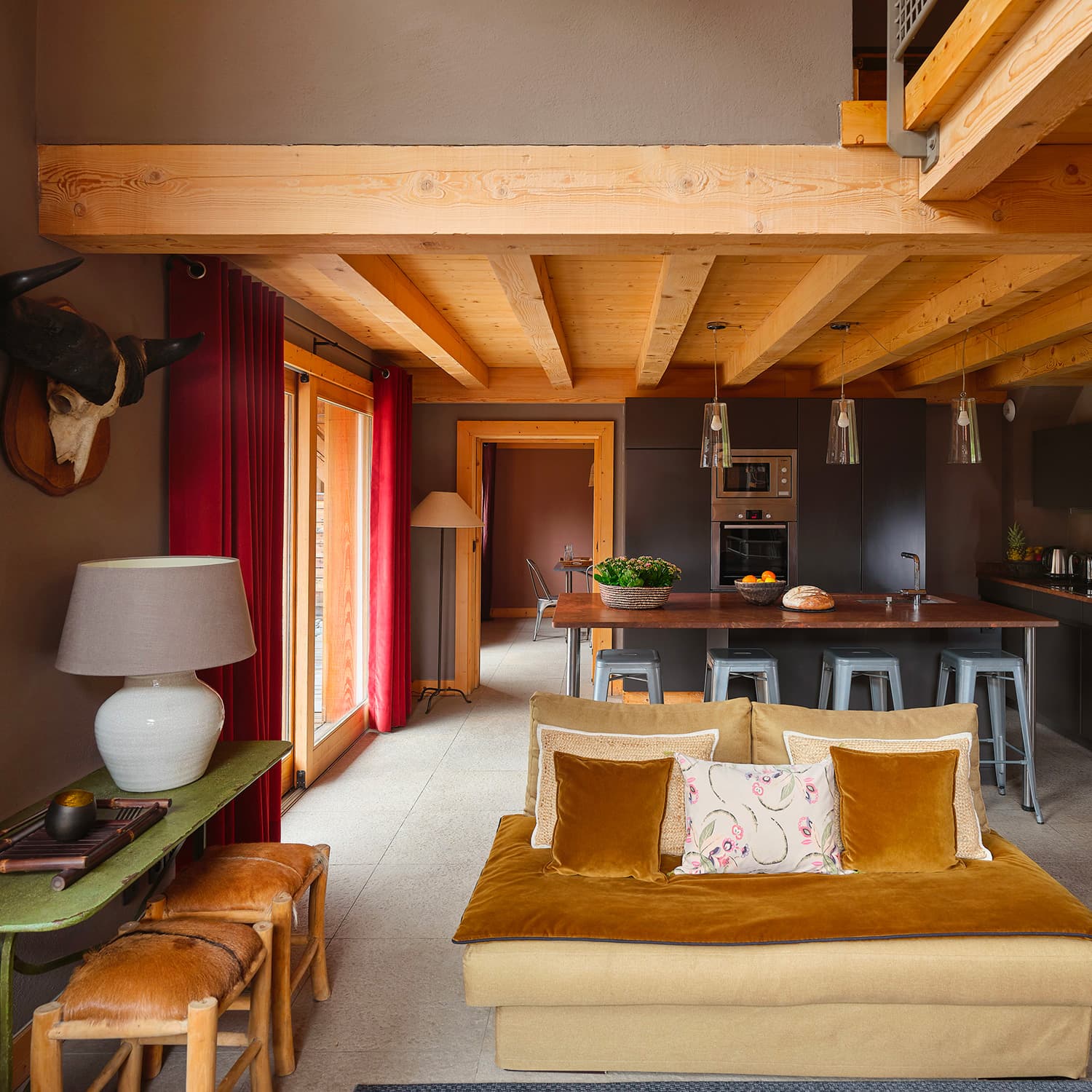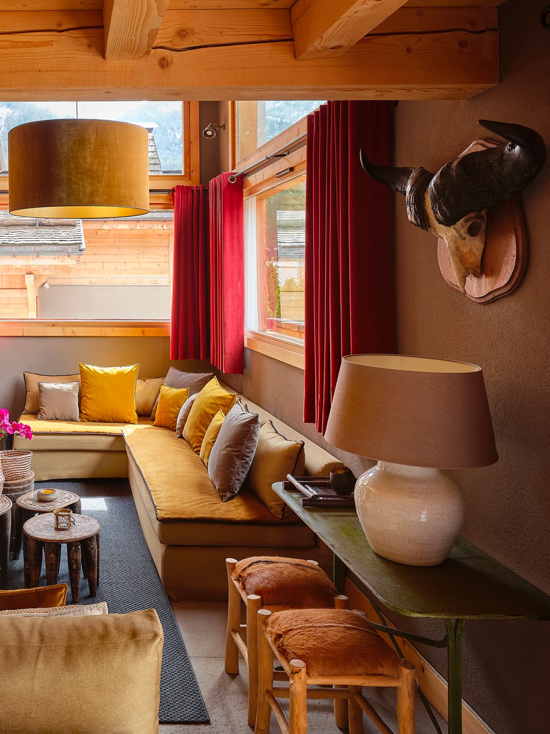 À partir de 4 000 € la semaineVoyager au pays des couleurs ocrées et chaudes. Un chalet spacieux à l'esprit intimiste et chaleureux où les canapés Caravane signent un décor chic et intemporel et sont une invitation à la convivialité.